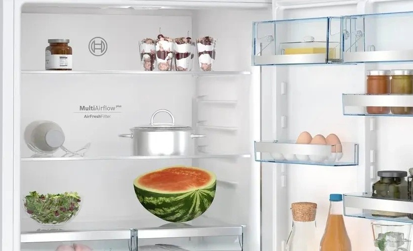 Bosch KGP76AWC0N объединяет современные технологии и продуманную организацию пространства: Multi Airflow обеспечивает равномерное охлаждение, зона свежести продлевает срок хранения продуктов, а управление через Home Connect делает использование максимально удобным.
