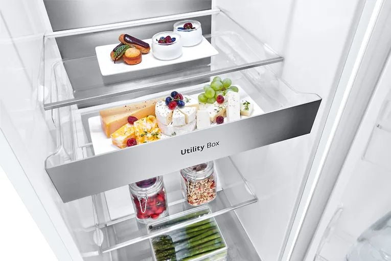 Функция нулевого зазора в наших дверях предотвращает удары выступающих дверей шкафа о стену или кухонную мебель при открывании. Zero Clearance — это специально разработанная петля для наших дверей, которая не требует дополнительного места при открытии двери. Здесь есть два основных преимущества. Во-первых, выдвигать ящики можно только при открытой дверце на 90 градусов. Во-вторых, холодильнику не нужно дополнительное пространство по бокам устройства. Вы сможете более свободно разместить технику на кухне, и вам не придется думать о том, что находится рядом с холодильником. Таким образом, вы сможете планировать свою кухню лучше и более гибко.