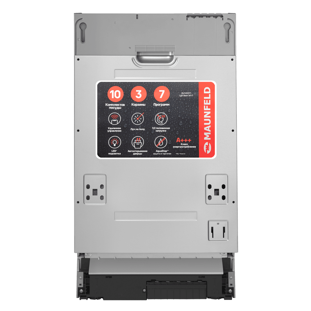 Посудомоечная машина MAUNFELD MLP45331T Light Beam Wi-Fi — удачное решение для кухни, где важно сохранить пространство: узкий формат с ширина 45 см позволяет встроить технику даже в компактный гарнитур без компромиссов по возможностям. При этом модель остаётся по-семейному практичной: вмещает до 10 комплектов посуды — удобно как для ежедневного цикла, так и после приёма гостей.