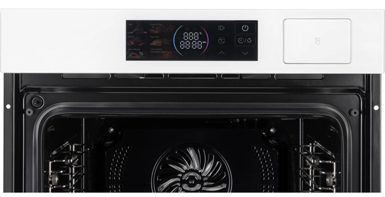 Встраиваемый электрический духовой шкаф HIBERG S-VM 6415 W SMART создан для тех, кто ценит удобство и стиль на кухне. Белый стеклянный фасад и цветной LED-дисплей с сенсорным управлением помогают быстро задать нужные параметры и контролировать процесс приготовления, не перегружая пространство визуально.